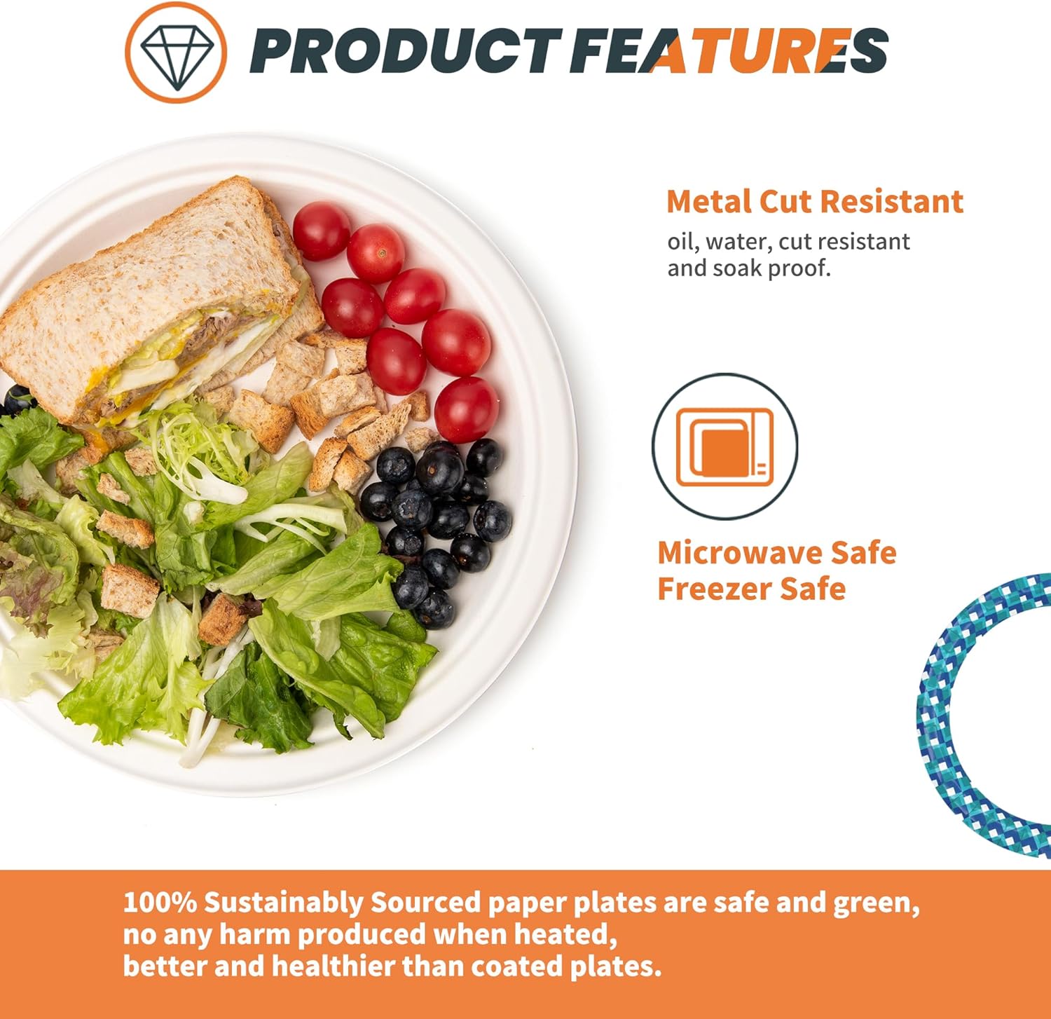 - Heavy Duty and Durable: Designed with a heavy-duty construction, these disposable paper plates can withstand various foods and weights. They are engineered to resist deformation or dissolution. Whether for home gatherings, picnics, or commercial events, they can handle it all.